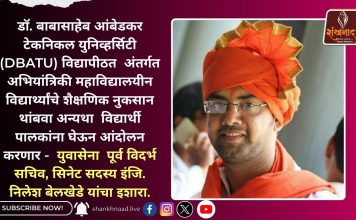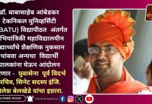 डॉ. बाबासाहेब आंबेडकर टेकनिकल युनिव्हर्सिटी (DBATU) विद्यापीठत अंतर्गत अभियांत्रिकी महाविद्यालयीन विद्यार्थ्यांचे शैक्षणिक नुकसान थांबवा अन्यथा विद्यार्थी पालकांना घेऊन आंदोलन करणार – ...