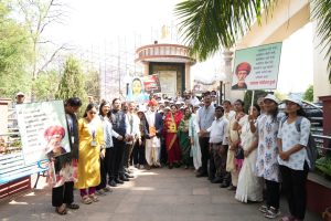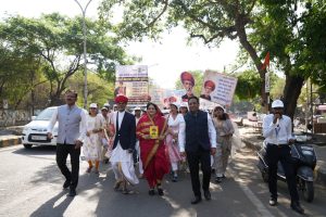 यानंतर शिवानी दाणी-वखरे यांच्या हस्ते रॅलीला हिरवी झेंडी दाखवून औपचारिक प्रारंभ करण्यात आला. रॅलीचे प्रमुख आकर्षण ठरले ते म्हणजे क्रांतिसूर्य जोतीराव फुले यांच्या वेशभूषेत रंगराज गोस्वामी आणि सावित्रीबाई फुले यांच्या वेशभूषेत डॉ. वीणा राऊत यांनी साकारलेली जिवंत प्रतिमा. या सादरीकरणाने उपस्थित नागरिकांचे विशेष लक्ष वेधून घेतले आणि संपूर्ण वातावरण भारावून गेले. रॅलीदरम्यान समता, शिक्षण आणि सामाजिक परिवर्तनाचे संदेश देणारे फलक, घोषवाक्ये आणि जनजागृतीपर संदेश झळकत होते. लोहापूल, मॉरेस कॉलेज रोड, झिरो माईल मार्गे मार्गक्रमण करत ही भव्य रॅली संविधान चौकात पोहोचली. येथे भारतरत्न डॉ. बाबासाहेब आंबेडकर यांच्या पुतळ्याला अभिवादन करून रॅलीचा समारोप करण्यात आला.