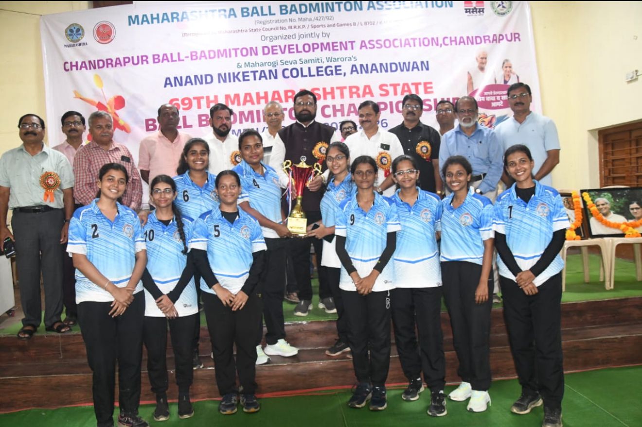 चंद्रपूर :- महाराष्ट्र बॉल बॅडमिंटन असोसिएशन व चंद्रपूर बॉल-बॅडमिंटन डेव्हलपमेंट असोसिएशनच्या वतीने आयोजित ६९ वी वरीष्ठ गट राज्यस्तरीय बॉल बॅडमिंटन अजिंक्यपद स्पर्धा (महिला व पुरुष) दिनांक ११ ते १४ सप्टेंबर २०२५ दरम्यान आनंद निकेतन महाविद्यालयाचे पटांगण, आनंदवन येथे पार पडली. राज्यभरातून तब्बल ६०० खेळाडूंनी सहभाग घेतला.