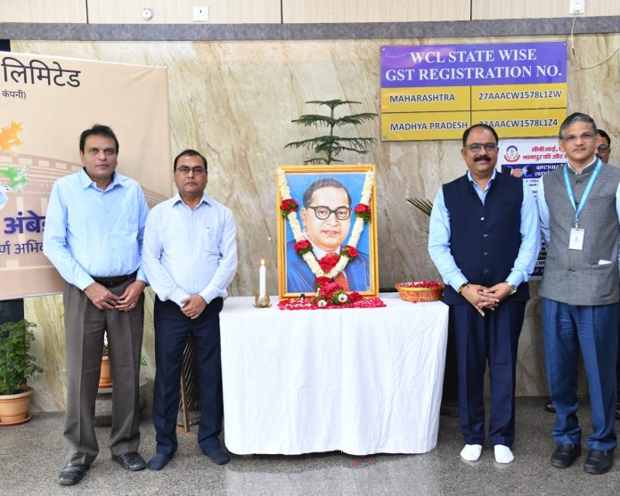 नागपूर (Nagpur):- आज दिनांक 14.04.2026 को, वेकोलि में, बाबासाहेब डॉ. भीमराव आंबेडकर को आदरांजलि अर्पित की गयी। मुख्यालय में आयोजित समारोह में वेकोलि के निदेशक (वित्त) श्री बिक्रम घोष, निदेशक (मानव संसाधन) डॉ. हेमंत शरद पांडे, निदेशक तकनीकी (योजना एवं परियोजना) श्री संदीप परांजपे तथा मुख्य सतर्कता अधिकारी श्री अजय मधुकर म्हेत्रे ने डॉ भीमराव आंबेडकर की जयंती पर उन्हें श्रद्धा-सुमन अर्पित कर उनके प्रति आदर व्यक्त किया।