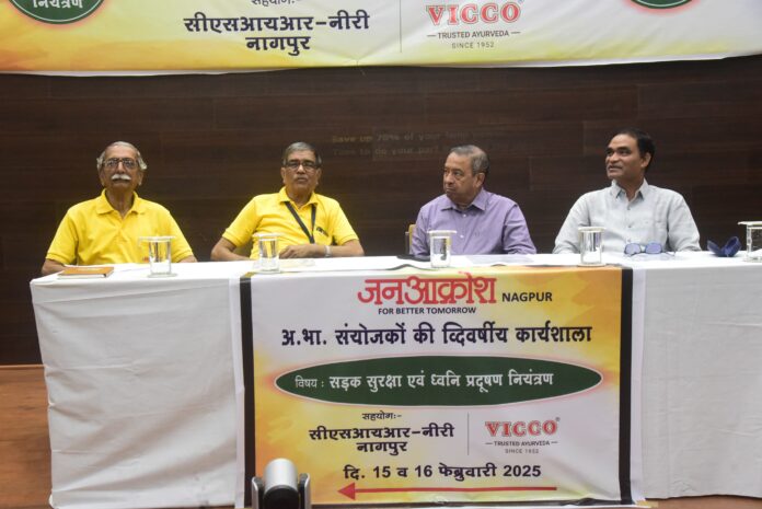रस्ते सुरक्षा क्षेत्रात मागील अनेक वर्षापासून कार्यरत जनआक्रोश या संस्थेचा देशभरात विस्तार झाल्यानंतर विविध शहरातील राष्ट्रीय संयोजकांची द्विवार्षिक कार्यशाळेचे उद्घाटन शनिवारी सकाळी नीरी सभागृहात करण्यात आले. ‘ सडक सुरक्षा एवं ध्वनी प्रदुषण नियंत्रण’ हा या द्विदिवसीय कार्यशाळेचा विषय आहे. याप्रसंगी प्रमुख पाहुणे म्हणून नीरीचे ज्येष्ठ शास्त्रज्ञ डॉ. प्रकाश कुंभारे, प्रमुख वक्ते म्हणून दै. हितवाचे संपादक विजय फणशीकर, संस्थेचे अध्यक्ष प्रकाश खांडेकर, सचिव रवींद्र कासखेडीकर आदी मान्यवर व्यासपीठावर उपस्थित होते.