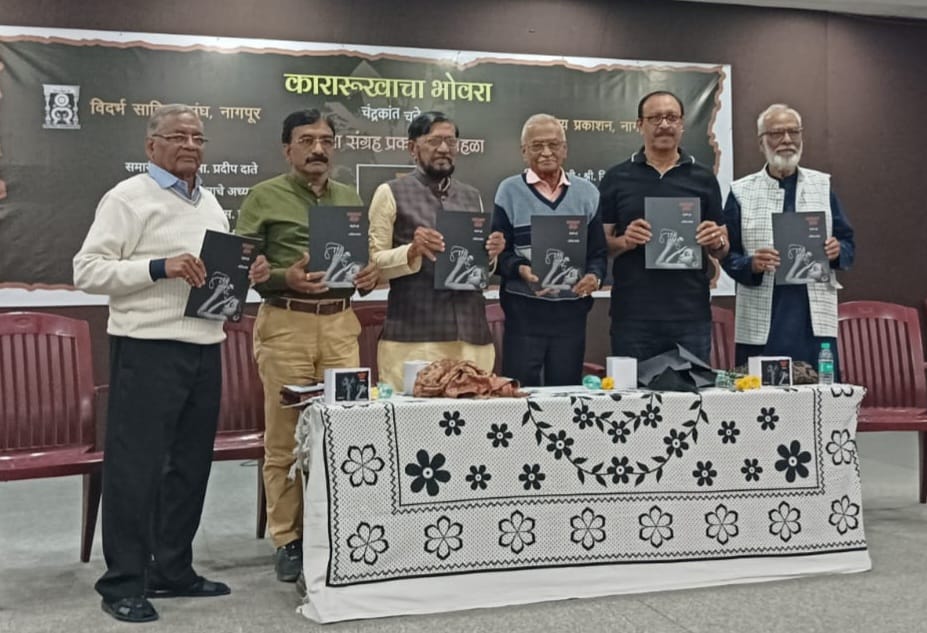 नागपूर ,दिनांक २५ डिसेम्बर: रवींद्रनाथ टागोर पासून ते अगदी आजच्या काळातील हिन्दी आणि उर्दू कवि, लेखक यांचा प्रभाव असलेल्या चंद्र्कांत चन्ने यांच्या ” कारारुखाचा भोवरा ” या कविता संग्रहात प्रत्येक कविता एका पेक्षा एक सरस काव्यानुभव देणारी असल्याचे प्रतिपादन ज्येष्ठ समीक्षक डॉ. वि. स. जोग यांनी केले. विदर्भ साहित्य संघ आणि विजय प्रकाशन यांच्या संयुक्त विद्यमाने , प्रा. चंद्रकांत चन्ने यांच्या ” कारारुखाचा भोवरा “ या कविता संग्रहाचा प्रकाशन समारंभ शनिवारी विदर्भ साहित्य संघाच्या सांस्कृतिक संकुलातील अमेय दालनात संपन्न झाला, त्यावेळी प्रकाशन केल्यावर ते बोलत होते. कार्यक्रमाला विदर्भ साहित्य संघाचे अध्यक्ष प्रदीप दाते समारंभाच्या अध्यक्षस्थानी होते, ज्येष्ठ समीक्षक डॉ. वि. स. जोग , काव्यअभ्यासक डॉ. राजेंद्र नाईकवाडे आणि दृश्यकलाकार विवेक रानडे यांनी याप्रसंगी काव्यसंग्रहावर भाष्य केले.