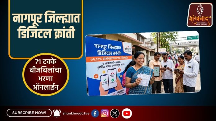 नागपूर(Nagpur), 9 एप्रिल 2026: डिजिटलायझेशनच्या युगात महावितरणच्या नागपूर जिल्ह्यातील लघुदाब ग्राहकांनी ऑनलाईन वीजबिल भरण्याला मोठी पसंती दिली आहे. नुकत्याच संपलेल्या 2025-26 या आर्थिक वर्षात जिल्ह्यातील तब्बल 71.03 टक्के ग्राहकांनी आपल्या वीजबिलांचा भरणा करण्यासाठी ऑनलाईन पर्यायाचा अवलंब केला असून, एकूण जमा महसुलापैकी 77.23 टक्के रक्कम डिजिटल माध्यमातून प्राप्त झाली आहे. महावितरणने उपलब्ध करून दिलेल्या विविध डिजिटल प्लॅटफॉर्म्समुळे वीज ग्राहकांना घरबसल्या बिल भरणे सोपे झाले असून, त्याचा सकारात्मक परिणाम आकडेवारीतून स्पष्टपणे दिसून येत आहे.