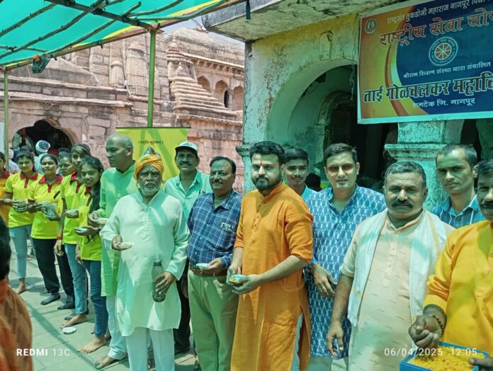 रामटेक गडमंदिर येथे श्रीराम जन्मोत्सव प्रसंगी हिंदू रिसर्च फाउंडेशन रामटेक, रेड स्वस्तिक सोसायटी रामटेक, एनटीपीएस हिवराबाजार व ताई गोलवळकर महाविद्यालय रामटेक यांच्या संयुक्तवतीने दर्शनासाठी आलेल्या भाविकांना बुंदीचा प्रसाद व पाणी वाटप करण्यात आले.