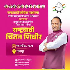 नागपूर (Nagpur) :- नागपूरमध्ये 19 सप्टेंबर रोजी राष्ट्रवादी काँग्रेस पार्टी (अजित पवार गट) चे राष्ट्रीय चिंतन शिबीर एम्प्रेस पॅलेस वर्धा रोड येथे होणार आहे. या शिबिराला राष्ट्रीय अध्यक्ष, राज्याचे उपमुख्यमंत्री मा. ना. श्री अजित दादा पवार साहेब, राष्ट्रीय कार्याध्यक्ष, खासदार मा. श्री प्रफुल्ल भाई पटेल साहेब, प्रदेशाध्यक्ष, खासदार मा. श्री सुनीलजी तटकरे साहेब, राज्याचे मंत्री मा.ना. श्री छगनजी भुजबळ साहेब आणि यांच्यासह देशभरातून प्रमुख नेते, सर्व मंत्री, खासदार, आमदार, जिल्हाप्रमुख, सेल अध्यक्ष आणि राष्ट्रीय पदाधिकारी असे 550 पदाधिकारी सहभागी होणार आहे.