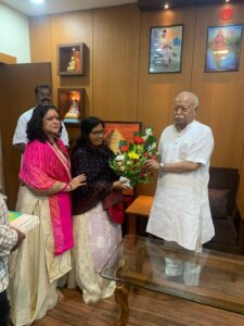 नागपूर (Nagpur):- अश्विन शु. २ (द्वितीया) मंगळवार रोजी नागपूर महाल कार्यालयात राष्ट्रीय स्वयंसेवक संघाचे सरसंघचालक डॉ. मोहन भागवत आणि नारा (कारंजा घाटगे) येथील श्री संत सखुमाता यांची सदिच्छा भेट झाली.