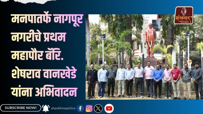 नागपूर महानगरपालिकेचे उपायुक्त श्री. निर्भय जैन यांनी मनपा मुख्यालयातील हिरवळीवर असलेल्या बॅरिस्टर शेषराव वानखेडे यांच्या पूर्णाकृती पुतळ्याला माल्यार्पण करून अभिवादन केले. याप्रसंगी सहायक आयुक्त श्री. श्याम कापसे, उद्यान संवर्धक श्री. अमोल चौरपगार, जनसंपर्क अधिकारी श्री. मनीष सोनी, जनसंपर्क विभागाचे श्री. अमोल तपासे यांच्यासह मनपाचे इतर कर्मचारी उपस्थित होते.