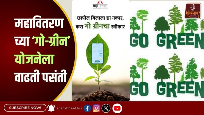 ‘गो-ग्रीन योजनेतील वीजग्राहकांचा वाढता प्रतिसाद सहभाग स्वागतार्ह आहे. त्यांना वीजबिल डिजिटल स्वरुपात पाठवले जात आहे. पर्यावरणाला हातभार लावण्यासाठी वीजग्राहकांनी या योजनेत सहभागी व्हावे’, असे आवाहन महावितरणने केले आहे.