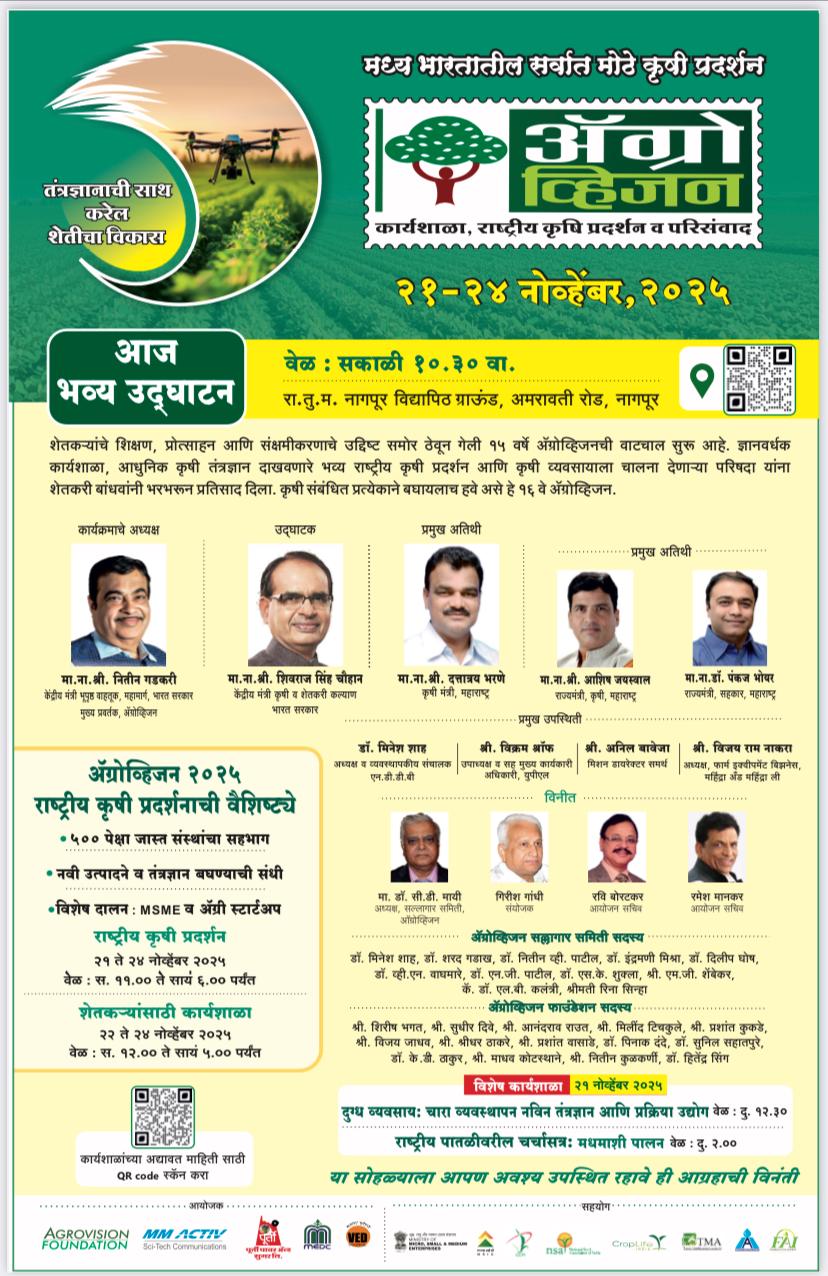 LOCAL NEWSMAHARASHTRANAGPUR NEWSRegionalSocialTop NewsVidarbha ‘अॅग्रोव्हिजन’ कृषी प्रदर्शनाचे 21 नोव्हेंबर रोजी उद्घाटन By Ashlesha Bhat - November 20, 2025 0 Share WhatsAppFacebookTwitterTelegram Related posts:मान्सूनपूर्व देखभालीसाठी विविध भागांत आज वीज बंदApril 21, 2026Artical Blogमान्सूनपूर्व कामे महावितरणकडून वेगात सुरूApril 21, 2026Artical Blog21 अप्रैल को PRSI मनाएगी राष्ट्रीय जनसंपर्क दिवसApril 21, 2026Artical Blog