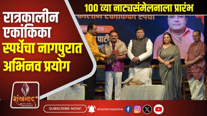 अखिल भारतीय मराठी नाट्य परिषदेचे 100 वे विभागीय मराठी नाट्यसंमेलन 24 ते 27 या दरम्यान नागपूर येथे आयोजित करण्यात आले असून यानिमित्त गुरुवारी पूर्वरंगातील डॉ. गिरीश गांधी गौरवार्थ रात्रकालीन एकांकिका स्पर्धेचे उद्घाटन हेमंत पाटील यांच्या हस्ते दीप्रज्वलन करून करण्यात आले. कार्यक्रमाच्या अध्यक्षस्थानी अखिल भारतीय मराठी नाट्य परिषद, नागपूर शाखेचे अध्यक्ष अजय पाटील होते तर झाडीपट्टी कलावंत पद्मश्री डॉ. परशुराम खुणे, ज्येष्ठ रंगकर्मी शेखर बेंद्रे, अभिनेत्री काजल राऊत, अखिल भारतीय मराठी नाट्य परिषदेचे नरेश गडेकर यांची उपस्थिती होती.
