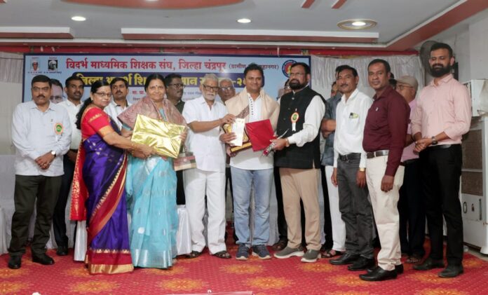 विदर्भ माध्यमिक शिक्षक संघ, चंद्रपूर यांच्या वतीने व गोविंद मैना फाऊंडेशन चंद्रपूरच्या सौजन्याने शिक्षकदिनानिमित्त “जिल्हा आदर्श शिक्षक सन्मान सोहळा २०२५” धनोजे कुणबी सभागृृह चंद्रपूर येथे रविवारी पार पडला. या कार्यक्रमात अध्यक्षस्थानावरून आमदार अडबाले मार्गदर्शन करीत होते.