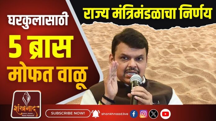 घरकुलांसाठी पाच ब्रास वाळू मोफत दिली जाणार आहे. जनतेची जेवढी मागणी आहे तेवढी वाळू उपलब्ध करण्यात येणार आहे.
