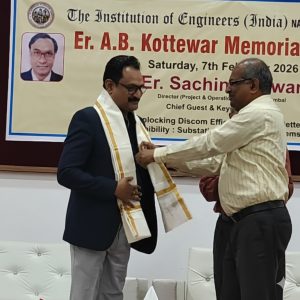 इन्स्टिट्यूशन ऑफ इंजिनियर्सतफे करण्यात आलेला सत्कार स्विकारतांना महावितरणचे संचालक (संचलन/प्रकल्प) सचिन तालेवार
