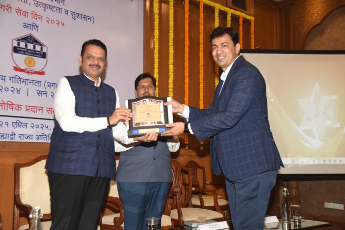 मुख्यमंत्री श्री. देवेंद्र फडणवीस यांच्या हस्ते आयुक्तांनी स्वीकारला पुरस्कार