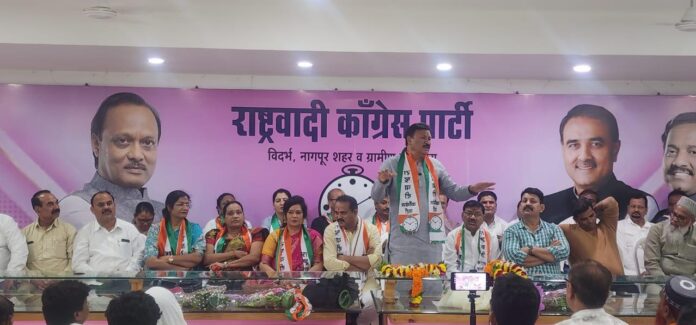 नागपूर (Nagpur) दिनांक: 27/08/25 :- राष्ट्रवादी काँग्रेस पक्षाच्या नागपूर येथील गणेश पेठ कार्यालयात नवनियुक्त शहर अध्यक्ष श्री. अनिल अहिरकर व प्रदेश महासचिव तानाजी वनवे यांचे उत्साहपूर्ण आणि भव्य स्वागत करण्यात आले.कार्यक्रमाला पक्षाचे विविध विभागातील वरिष्ठ पदाधिकारी, कार्यकर्ते आणि मान्यवरांची उपस्थिती होती. स्वागतासाठी फटाक्यांची आतषबाजी, पुष्पहार, ढोल-ताशांच्या गजरात नवनियुक्त अध्यक्षांचे आणि पदाधिकाऱ्यांचे अभिनंदन करण्यात आले.