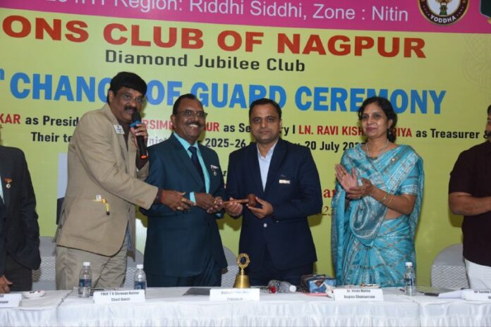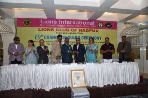 नागपुर (Nagpur):- लॉयन्स क्लब ऑफ नागपुर का 69वां ‘चेंज ऑफ गार्ड’ समारोह रविवार को एयरपोर्ट सेंटर पॉइंट होटल में अत्यंत उत्साहपूर्वक संपन्न हुआ। वर्ष 2025-26 के लिए नई कार्यकारिणी की घोषणा इस अवसर पर की गई। इस कार्यक्रम में निधीश सावरकर ने अध्यक्ष पद, गुरसिमरन कौर ने सचिव पद और रवि किशनपुरिया ने कोषाध्यक्ष पद की जिम्मेदारी संभाली।