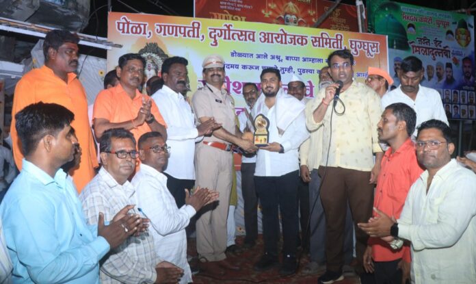 याप्रसंगी भाजपा जिल्हा महामंत्री विवेक बोढे यांनी उपस्थित राहून सार्वजनिक गणेश मंडळाच्या अध्यक्षाचे शाल, श्रीफळ व सन्मानचिन्ह देऊन स्वागत केले.