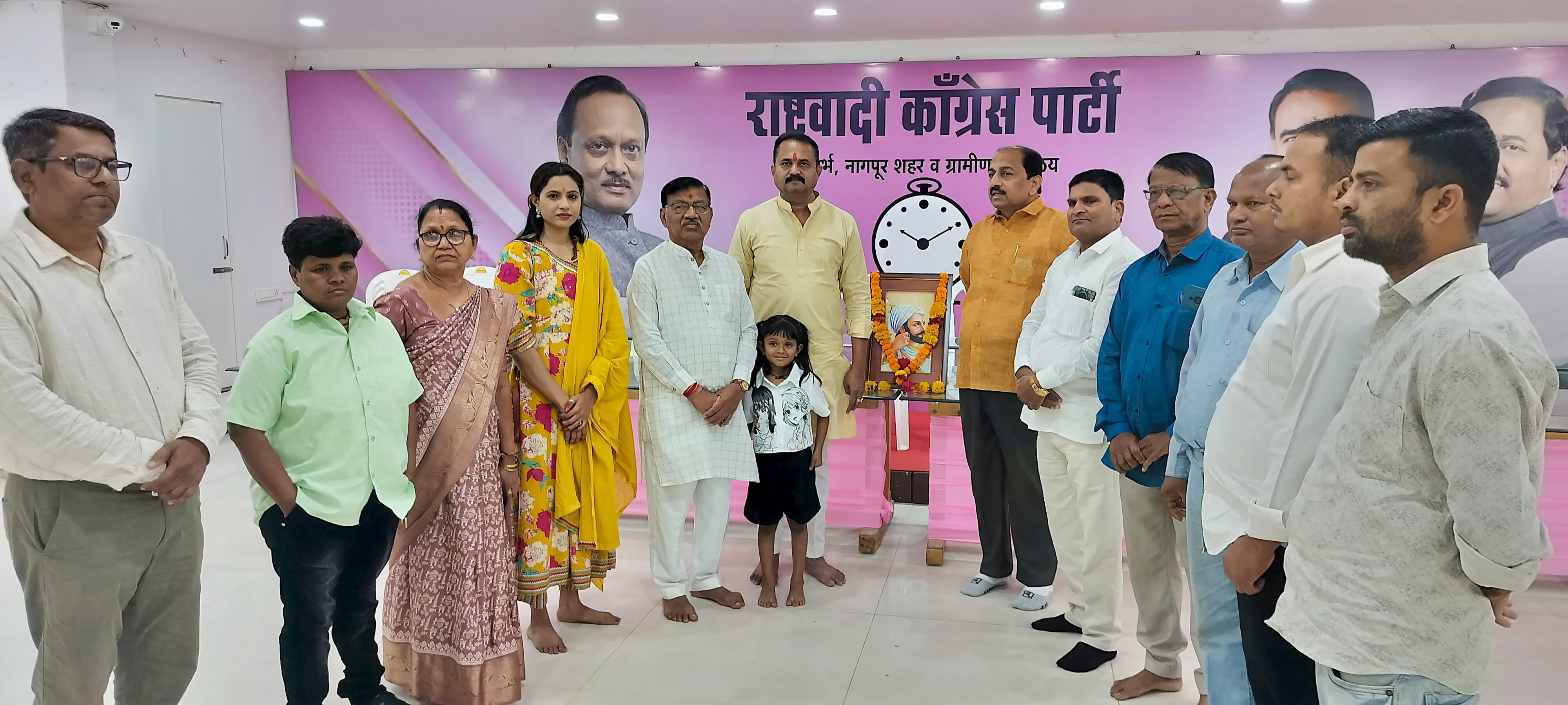 राष्ट्रवादी काँग्रेस पक्ष नागपूर शहर तर्फे आज गुरूवार दि.३ एप्रिल २५ रोजी दुपारी पक्ष कार्यालय गणेशपेठ नागपूर येथे हिंदवी स्वराज्याचे संस्थापक, राजे छत्रपती शिवाजी महाराज यांच्या स्मृतिदिनानिमित्त त्यांच्या फोटोला माल्यार्पण करून विनम्र अभिवादन करण्यात आले.
