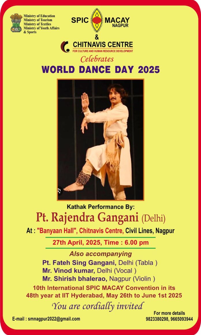 नागपूर (Nagpur) – भारतीय शास्त्रीय संगीत व संस्कृतीचा युवा वर्गात प्रसार व प्रचार करण्याच्या हेतूने कार्यरत राष्ट्रीय संगीत संस्था स्पिक मॅकेतर्फे विश्व नृत्य दिवस साजरा करण्यात येणार असून निमित्ताने कथक नृत्य समारोहाचे आयोजन 27 ते 29 एप्रिलला करण्यात आले आहे.