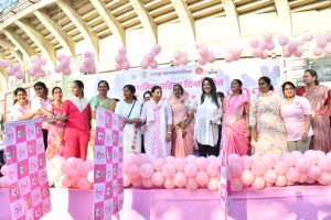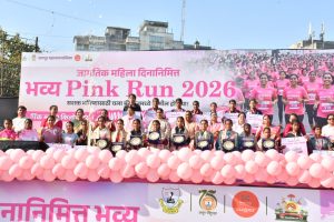 नागपूर(Nagpur), ता. ८: नागपूर महानगरपालिकेतर्फे जागतिक महिला दिनाचे औचित्य साधून स्त्री-शक्तीचा जागर व स्त्रीत्वाचा सन्मान करण्यासाठी आयोजित ‘पिंक मॅरेथॉन’ स्पर्धेला उत्स्फूर्त प्रतिसाद मिळाला. सशक्त भविष्य आणि स्वतःच्या आरोग्यासाठी हजारोच्या संख्येत महिलांनी स्पर्धेत सहभाग घेत आरोग्य प्रति सजग राहण्याचा संदेश दिला. या मॅरेथॉन स्पर्धेचे उद्घाटन प्रसिद्ध समाजसेविका श्रीमती अमृता देवेंद्र फडणवीस यांनी केले. तर कार्यक्रमाच्या अध्यक्षस्थानी महापौर निता ठाकरे होत्या.
