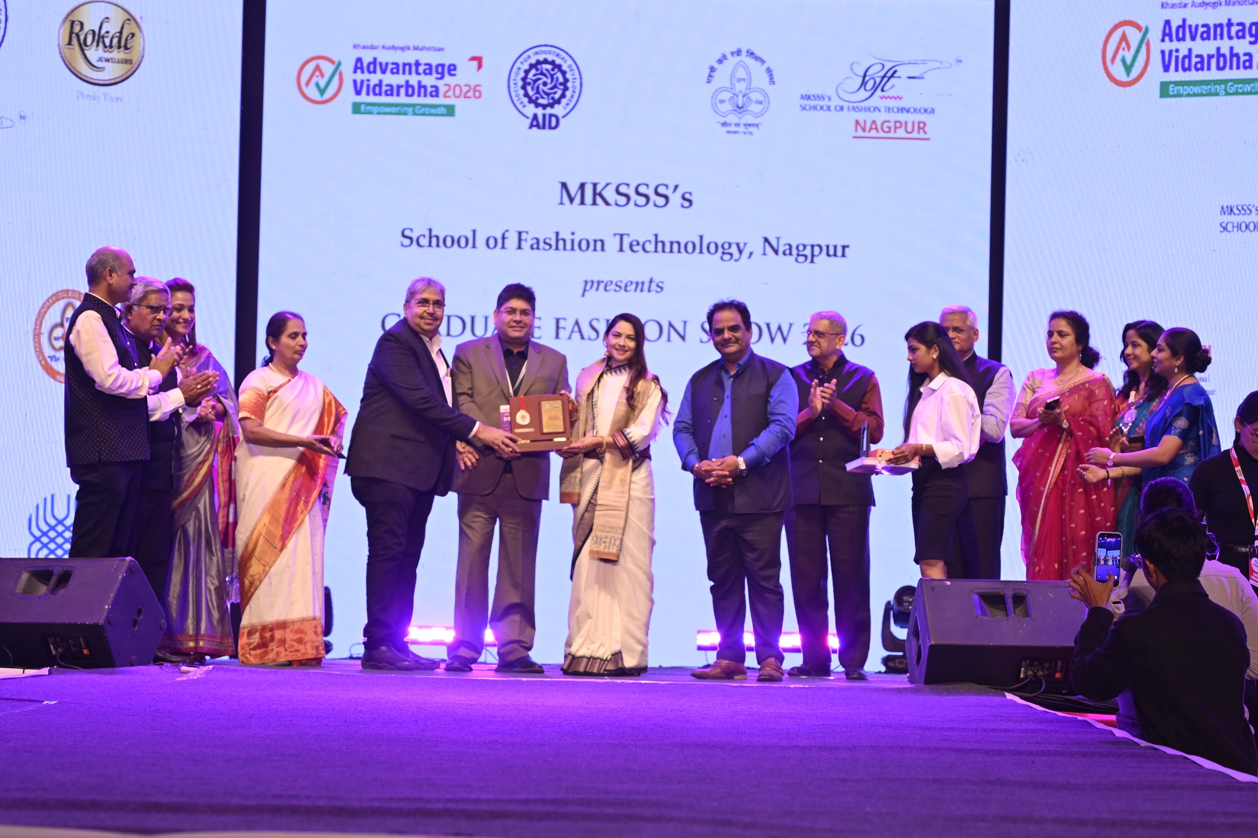 नागपूर (NAGPUR) 8 फेब्रुवारी :- ‘अॅडव्हान्टेज विदर्भ 2026 –खासदार औद्योगिक महोत्सवांतर्गत महर्षी कर्वे स्त्री शिक्षण संस्थेच्या एमकेएसएस स्कूल ऑफ फॅशन टेक्नॉलॉजी यांच्यावतीने दुसऱ्या ग्रॅज्युएट फॅशन शोचे यशस्वी आयोजन करण्यात आले. सुप्रसिद्ध अभिनेत्री सोनाली कुलकर्णी यांच्या प्रमुख उपस्थितीने हा फॅशन शो गाजला.