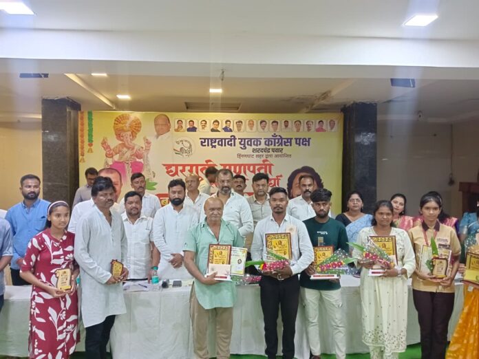 हिंगणघाट : राष्ट्रवादी युवक काँग्रेस शरदचंद्र पवार पक्ष हिंगणघाट शहराच्या वतीने घरगुती गणपती सजावट स्पर्धेचे बक्षीस वितरण सोहळा नुकताच पार पडला.