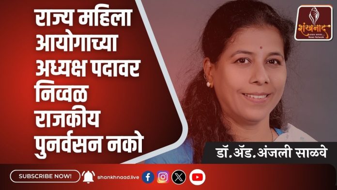 महिला आयोगाच्या पदावर महिला विषयक कायदा, महिला धोरण याचा अभ्यास आणि त्याची अंमलबजावणी करवून घेणे, यंत्रणेसोबत काम करण्याचा अनुभव नसलेल्या महिलाना निव्वळ राजकीय पुनर्वसन म्हणून नियुक्त न करता महिलायोग कायद्याच्या निकषात येणाऱ्या महिलांनाच कायदेशीर प्रक्रिया राबवून नियुक्त करावे अशी मागणी डॉ.ऍड. अंजली साळवे यांनी राज्याचे मुख्यमंत्री देवेंद्र फडणवीस यांना केली आहे.