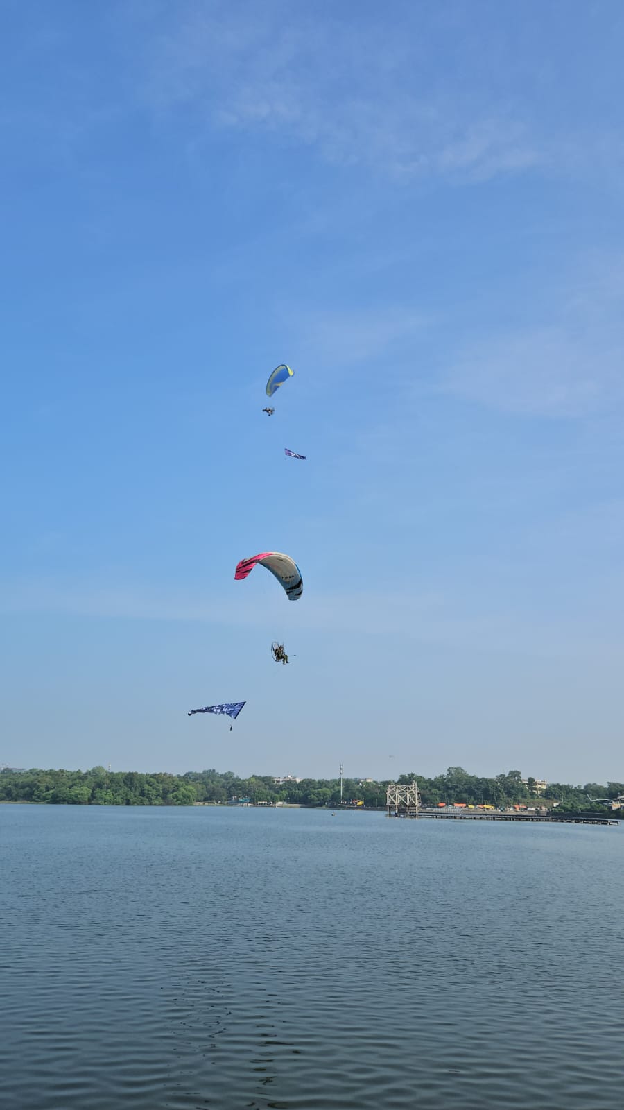 नागपूर, ४ नोव्हेंबर: नागपूरच्या देखण्या फुटाळा तलावाच्या आकाशात मंगळवारी रोमांचक दृश्य पाहायला मिळाले. प्रशिक्षित पायलटांनी शहरातील महत्त्वाच्या ठिकाणांवर — फुटाळा तलाव, व्हेटरिनरी कॉलेज,सेमिनरी हिल,तेलनखेड़ी आणि भरत नगर परिसरावर — थरारक *पॅरामोटरींग उड्डाणांचे* सादरीकरण केले.