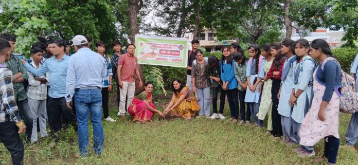 मंगरूळपीर (Mangrulpir):- स्थानिक श्री.वसंतराव नाईक कला व श्री.अमरसिंग नाईक वाणिज्य महाविद्यालय मंगरूळपीर येथील राष्ट्रीय सेवा योजना विभागाच्या वतीने हरित क्रांतीचे प्रणेते श्री वसंतरावजी नाईक यांच्या जयंती निमित्त संस्थेचे अध्यक्ष मा.आ.अ. राठोड साहेब व प्राचार्य डॉ.एस.एम.वडगुले यांच्या मार्गदर्शनात मा. मुख्यमंत्री व मा. उच्च व तंत्र शिक्षण विभाग यांच्या दहा कोटी वृक्ष लागवड मोहिमे अंतर्गत व शासनाच्या एक पेड मा के नाम या उपक्रमांतर्गत महाविद्यालय परिसरामध्ये वृक्षारोपण (Tree plantation) करण्यात आले.