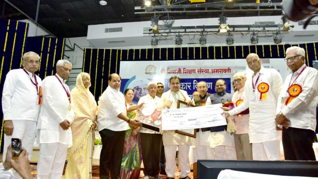श्री शिवाजी शिक्षण संस्थेद्वारे अमरावती येथे आयोजित कार्यक्रमात आज केंद्रीय मंत्री श्री नितीनजी गडकरी यांना डॉ. पंजाबराव उर्फ भाऊसाहेब देशमुख स्मृती पुरस्काराने सन्मानित करण्यात आले. या वेळी श्री गडकरीजी यांनी या पुरस्कारासाठी शिवाजी शिक्षण संस्थेच्या पदाधिकाऱ्यांचे आभार मानले.