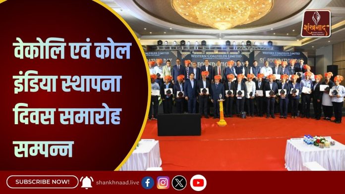 वेस्टर्न कोलफील्ड्स लिमिटेड (वेकोलि) एवं कोल इंडिया लिमिटेड के स्थापना दिवस के उपलक्ष्य में आज दिनांक 26.11.2025 को भव्य एवं गरिमामय समारोह का आयोजन किया गया। समारोह में मुख्य अतिथि के रूप में कोयला मंत्रालय की अपर सचिव सुश्री रूपिंदर बरार तथा विशिष्ट अतिथि के रूप में कोयला मंत्रालय के अपर सचिव एवं कोल इंडिया लिमिटेड के अध्यक्ष श्री सनोज कुमार झा वीडियो कॉन्फ्रेंसिंग के माध्यम से कार्यक्रम में सहभागी हुए। कार्यक्रम की अध्यक्षता वेकोलि के अध्यक्ष-सह-प्रबंध निदेशक श्री जे. पी. द्विवेदी ने की । कार्यक्रम में निदेशक (वित्त) श्री बिक्रम घोष, निदेशक तकनीकी (संचालन/परियोजना एवं योजना) श्री आनंदजी प्रसाद, निदेशक (मानव संसाधन) डॉ. हेमंत शरद पांडे, मुख्य सतर्कता अधिकारी श्री अजय मधुकर म्हेत्रे तथा संचालन समिति के सदस्य श्री शिव कुमार यादव, श्री शरद धांडे, श्री आशीष मूर्ती एवं श्री मनोज आड़े (प्रतिनिधि सदस्य) अतिथि के रूप में प्रमुखता से मंच पर उपस्थित थे।
