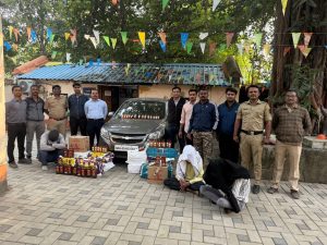 चंद्रपूर, दि. 21 : राज्य उत्पादन शुल्क विभाग, वरोरा निरीक्षक पथकाने येनसा ते सोसायटी (मजरा) जाणाऱ्या रस्त्यावर कारवाई करून चारचाकी वाहनातून अवैधरित्या वाहतूक होत असलेला परराज्यातील व बनावट विदेशी मद्यसाठा जप्त केला. जप्त मद्य आणि वाहनाची एकूण किंमत अंदाजे 6 लक्ष 40 हजार इतकी असून तिघांना ताब्यात घेण्यात आले आहे.
