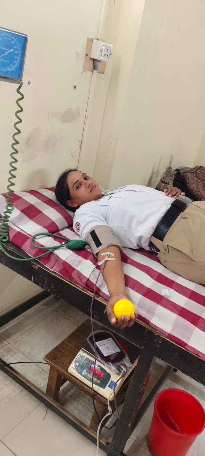 – वाहतुक महिला पोलीस कर्मचारी ने रक्तदान करत प्राण वाचवले. वाहतूक पोलीस भर उन्हात आपले कर्तव्य पार पाडत असतात. त्या बरोबर सामाजिक कर्तव्य ही पार पडतात. चंद्रपूर येथील महिला वाहतूक पोलिसांनी एका १५ दिवसाच्या बाळाला रक्तदान करून प्राण वाचवल्याची घटना चंद्रपुरात घडली. या घटनेमुळे वाहतूक शाखेतील कर्मचाऱ्यांच्या मदतीची आणि सामाजिक बांधिलकीची भावना अधोरेखित झाली.