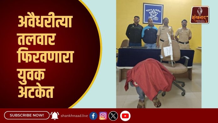 भद्रावती : दिनांक २६ नोव्हेंबर रोजी भद्रावती पोलिसांना मिळालेल्या गोपनीय माहितीनुसार सुमनाणा चौक परिसरात एक युवक अवैधरीत्या तलवार बाळगून नागरिकांमध्ये दहशत निर्माण करत असल्याची माहिती मिळाली. त्यावर तातडीने कारवाई करत पोलिसांनी आरोपी आशोक कोडपे (वय २२, रा. शिवाजी नगर, भद्रावती) याला ताब्यात घेतले.