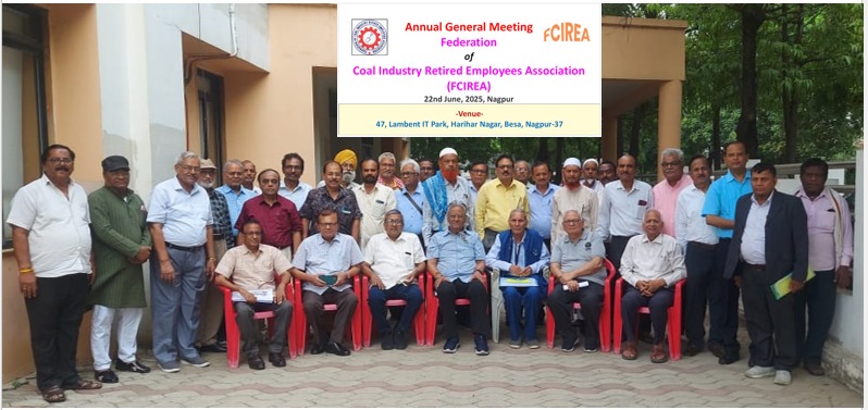 फेडरेशन ऑफ़ कोल इंडस्ट्री रिटायर्ड एम्प्लाइज असोसिएशन (FCIREA) की वार्षिक आम सभा 22 जून 25 को लैम्बन्ट आईटी पार्क, हरिहर नगर, बेसा नागपुर में श्री सी के वी एन राव की अध्यक्षता में संपन्न हुई ।