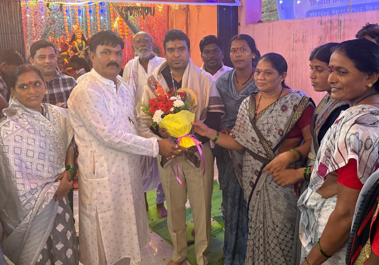 चंद्रपूर (Chandrapur) :- चंद्रपूर शहरापासून अवघ्या 5 ते 6 किलोमीटर अंतरावर असणाऱ्या मौजा विचोडा (बु) येथील चंद्रपूर जिल्ह्याचे कर्तबगार जिल्हाधिकारी मा.श्री.विनयजी गौडा साहेब यांनी श्री.अनिल डोंगरे उपसरपंच तथा सामाजिक कार्यकर्ते यांच्या निमंत्रनाला मान देत मागील काही महिन्यापूर्वी प्रभू श्रीराम मंदिर मूर्ती व भोलेनाथ महादेव याच्या शिवलिंग स्थापना झालेल्या मूर्तीचे दर्शन घेऊन तसेच देवी शारदा मातेला हार टाकून आरती व दर्शन घेऊन आशीर्वाद घेतले.यावेळी चंद्रपूरचे तहसीलदार श्री.विजयजी पवार श्री.अनिल डोंगरे शारदा महिला मंडळाच्या अध्यक्षा सौ.रेखा महाले माजी सरपंच सौ.किरण डोंगरे सौ. प्रियंका जाधव श्री.घनश्याम डोंगरे श्री.वसंता महाले श्री.प्रवीण कुलमेथे श्री.पांडूरंग कुलमेथे श्री.शंकर भंडारे श्री.मनोहर जाधव श्री. गोरख कुलमेथे श्री.राजू डोंगरे इत्यादी बहुसंख्येने गावातील पुरुष,महिला वर्ग उपस्थित होते.