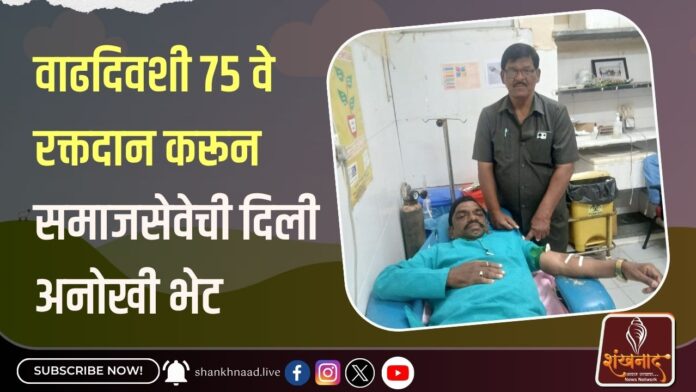 कु. सुदिक्षा मनोहर गंपलवार (रा. चांदली बूज, ता. सावली) ही थॅलेसिमिया रुग्ण सध्या जिल्हा रुग्णालयातील वॉर्ड क्रमांक १६ मध्ये उपचाराधीन आहे. तिला O+ रक्ताची तातडीची आवश्यकता असल्याचे समजताच छोटूभाई पटेल हायस्कूल माजी विद्यार्थी संघाचे सक्रिय कार्यकर्ते आणि शंखनाद न्यूज चॅनेलचे जिल्हा प्रतिनिधी जितेंद्र मशारकर यांनी तत्काळ रुग्णालयात धाव घेत रक्तदान केले.विशेष म्हणजे, या वाढदिवशी त्यांनी आपले ७५ वे रक्तदान पूर्ण केले असून समाजसेवेची एक अनोखी भेट दिली. त्यांच्या या मानवतावादी कृतीचे सर्वत्र कौतुक होत आहे.