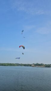नागपूर, ४ नोव्हेंबर: नागपूरच्या देखण्या फुटाळा तलावाच्या आकाशात मंगळवारी रोमांचक दृश्य पाहायला मिळाले. प्रशिक्षित पायलटांनी शहरातील महत्त्वाच्या ठिकाणांवर — फुटाळा तलाव, व्हेटरिनरी कॉलेज,सेमिनरी हिल,तेलनखेड़ी आणि भरत नगर परिसरावर — थरारक *पॅरामोटरींग उड्डाणांचे* सादरीकरण केले.
